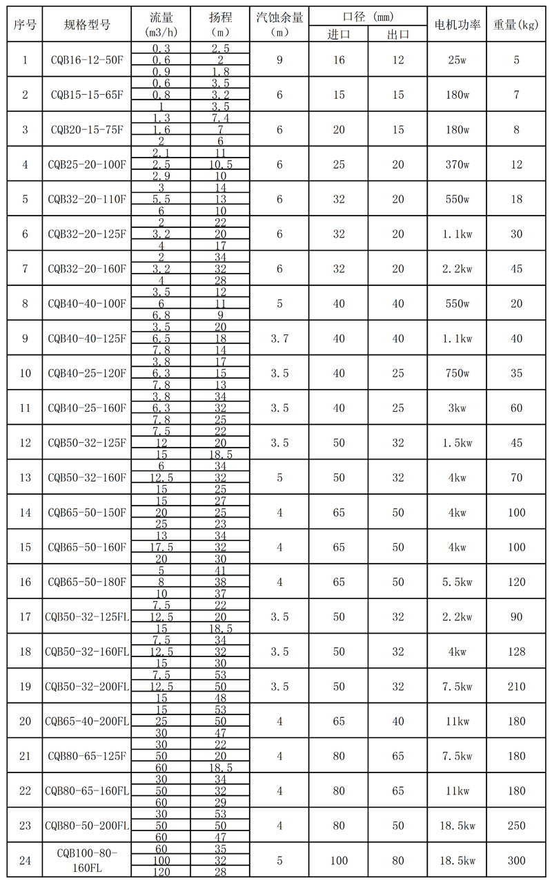 CQB系列氫氟酸泵的設(shè)計(jì)不僅具有普通磁力泵的結(jié)構(gòu)緊湊,外型美觀,體積小,噪聲低,運(yùn)行可靠等優(yōu)點(diǎn),且其過流部件采用耐腐蝕性能好的氟塑料,高溫磨壓制造,隔離外套采用特殊材料制造,具有高強(qiáng)度的力學(xué)性能,消除了普通磁力泵存在的磁渦流現(xiàn)象。因此,可輸送濃(強(qiáng))度的酸、堿、氧化劑等腐蝕性介質(zhì)不受損。