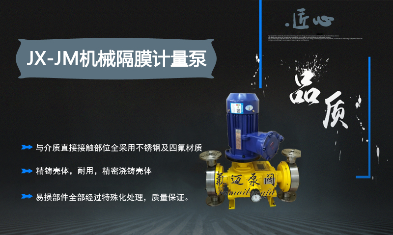 產(chǎn)品描述:JX-JM機(jī)械隔膜計(jì)量泵 ●概述 計(jì)量范圍:0-150L/H 壓力承受范圍:0-50MPa 驅(qū)動(dòng)方式:電機(jī)驅(qū)動(dòng) 控制方式:手動(dòng)、自動(dòng)控制(可接收4-20mA信號來調(diào)節(jié)流量) 配置方式:泵頭保溫、冷卻、電機(jī)可配防爆 ●特點(diǎn) 1、與介質(zhì)直接接觸部位全采用不銹鋼及四氟材質(zhì)。過流適應(yīng)一般顆粒,無毒無味。 2、精鑄殼體,耐用,精密澆鑄殼體,鑄銅蝸輪及耐磨球軸承,潤滑油潤滑所有驅(qū)動(dòng)零件。 3、易損部件全部經(jīng)過特...