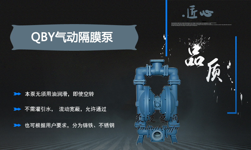 QBY系列氣動(dòng)隔膜泵是采用壓縮空氣為動(dòng)力源,對(duì)于各種腐蝕性液體,均能予以抽光吸盡。已被多家石油、化工、電子、陶瓷、紡織系統(tǒng)單位采用,安置在各種特殊場(chǎng)合,用來(lái)抽送各種常規(guī)泵不能抽吸的介質(zhì),取得了滿意的效果,也可根據(jù)用戶要求,分為鑄鐵、不銹鋼、鋁合金。