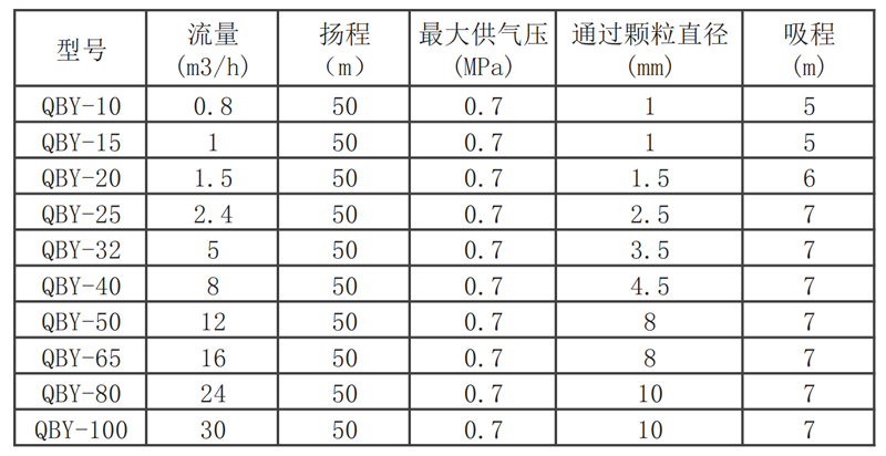 不需灌引水,流動(dòng)寬蔽,允許通過(guò)既能抽送流動(dòng)的液體,又能輸送一些不易流動(dòng)的介質(zhì),具有自吸泵、潛水泵、屏蔽泵、泥漿泵和雜質(zhì)泵等許多優(yōu)點(diǎn)。可以浸沒(méi)在介質(zhì)中工作,本泵無(wú)須用油潤(rùn)滑,即使空轉(zhuǎn),對(duì)泵也無(wú)任何影響。揚(yáng)程、流量可通過(guò)氣閥開(kāi)度實(shí)現(xiàn)無(wú)級(jí)調(diào)節(jié)。標(biāo)準(zhǔn)吸程高達(dá)7m,揚(yáng)程達(dá)50m,出口壓力≥6kgf/c㎡。