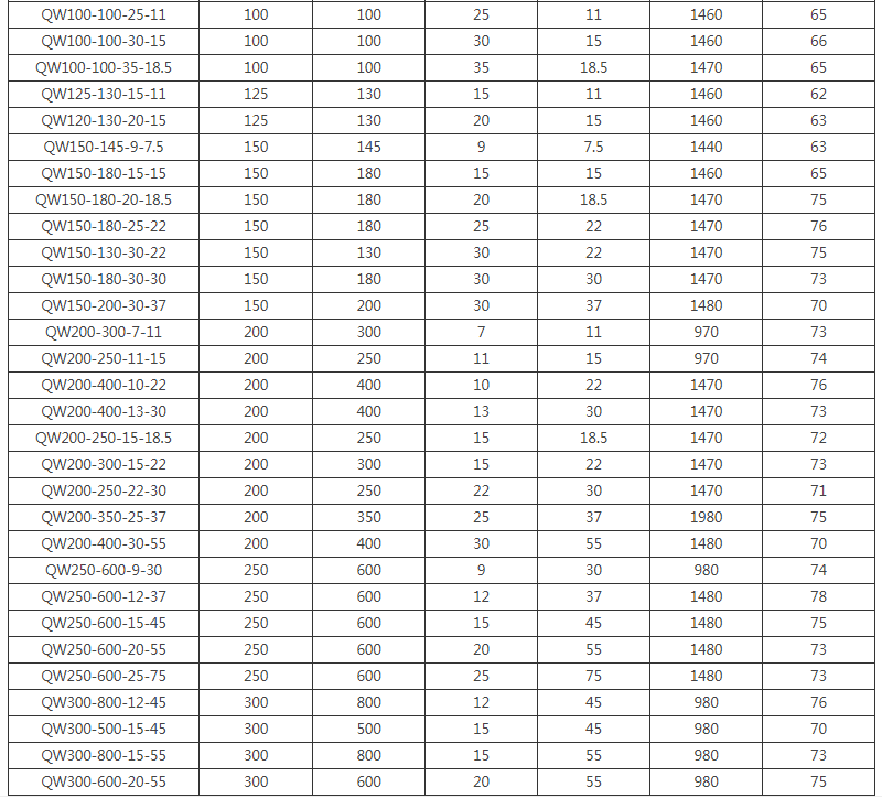 QW潛水式污水泵主要部件由葉輪、泵體、底座潛水電機組成。水泵和電機是同一根軸,由于水泵位于整個排污泵蕞下端,它能抽吸地面積余污水。葉輪為雙流道設(shè)計,大大的提高了污物的過流能力,能有效的通過直徑為泵口徑50%的固體顆粒。